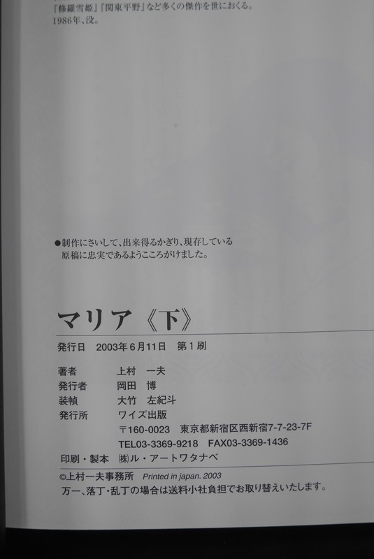 『マリア【下】』上村一夫/ワイズ出版