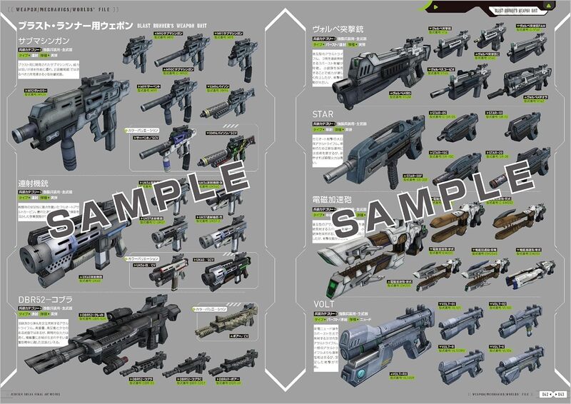 膨大なブラスト・ランナーや武器、メカニックの設定資料集。アーケード版およびPS4版で登場したブラスト・ランナーはもちろん、多岐にわたる武器と登場メカニックの設定資料を数百ページ数にわたって収録。